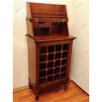 Высота бара в сложенном виде - 1325мм., в разложенном - 1580 мм. Предусмотрены две направляющих для фужеров. Резьба и декоративные элементы выделены античной бронзой. Бар не требует сборки.