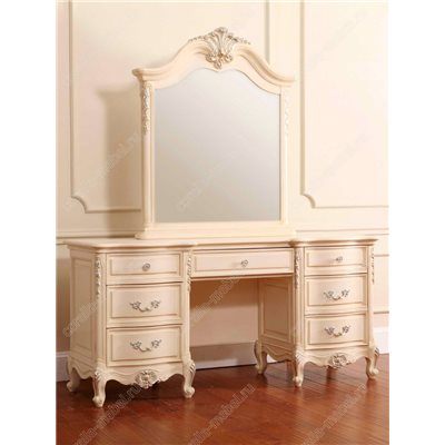 Резьба и декоративные элементы выделены бронзой. Зеркало выполнено по периметру с фацетом.