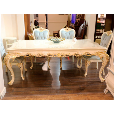 Большой обеденный стол для просторных квартир и загородных домов. Стол расчитан на 12 человек. Резьба и декоративные элементы выделены бронзой. Стол требует сборки (нужно прикрутить ножки). Прямоугольные обеденные столы лучше подходят для вытянутых свободных зон в гостиных и столовых.